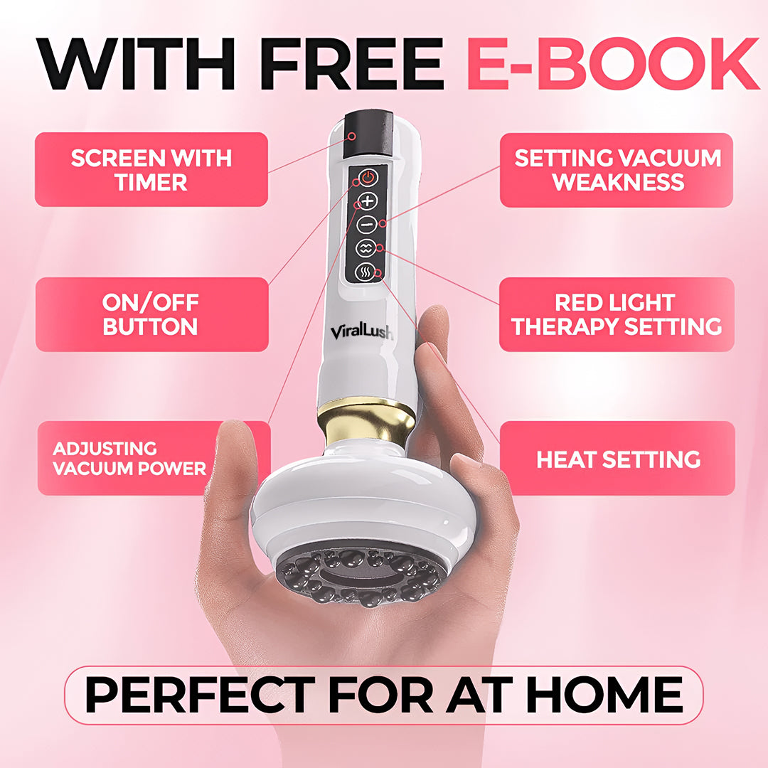 ViralLush's Advanced Anti-Cellulite Massager combines professional-grade treatments into one easy-to-use portable device for at-home convenience. It utilizes a synergy of red light therapy, infrared heat, adjustable cupping suction, and scraping techniques—commonly used to reduce cellulite and improve skin elasticity. These methods work together to target stubborn cellulite, boost circulation, and rejuvenate your skin while allowing you to adjust suction levels for optimal comfort.