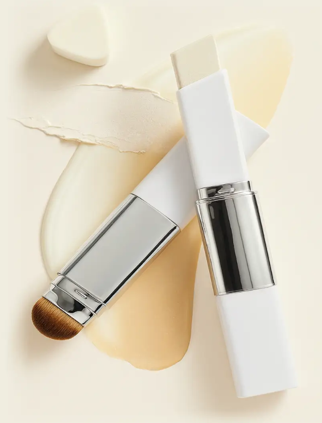 Dual-ended stick with built-in brush. Perfect for touch-ups on-the-go.