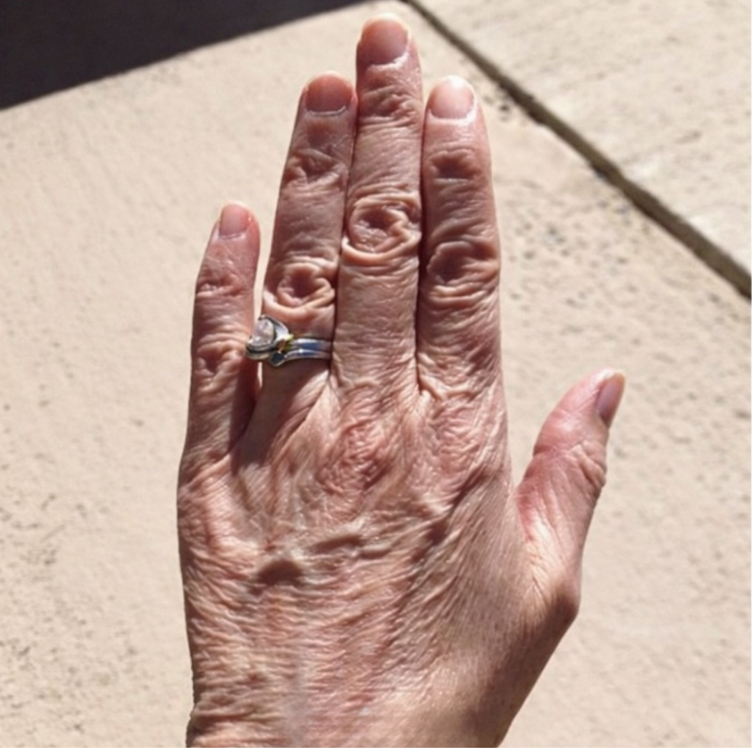 That constant sun exposure breaks down collagen and elastin faster. Add in decades of nothing but body lotion (which just sits on the surface), and you get crepey texture, irregular tone, and skin that looks tired.