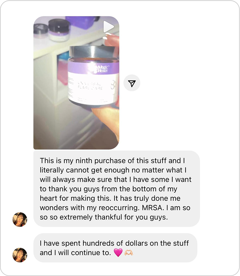 We know the healing power of Universal Flare Care—and we want you to feel just as confident. That’s why we offer a 100% money-back guarantee on our single 4oz Universal Flare Care for 30 days from the day you receive your order.
