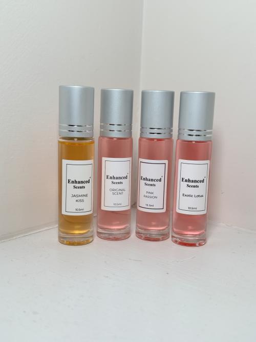 A collection of pheromone-infused roller perfumes that elevate your unique body chemistry - so you feel more captivating, confident, and effortlessly feminine. Each scent is crafted to naturally enhance attraction and leave a lasting impression.